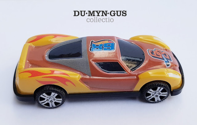 HW Sport Car - molded plastic "68 Hot Wheels" -brown, yellow + blue, white, black, yellow red decor .