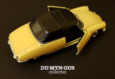 Citroën DS 19 Cabriolet (closed) - pale yellow with black canvas top.