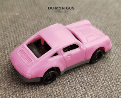 Porsche 911 - plastic model: pink body / grey base / black wheels.