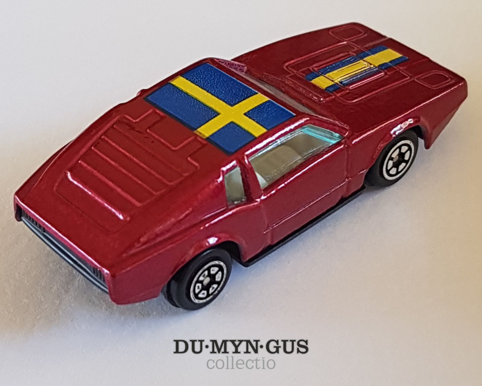 Saab Sonet - dark red + stripes & sweden flag in blue and yellow