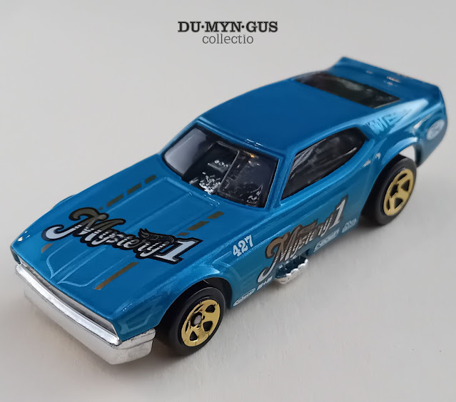 Ford Mustang Funny Car (1971) "Mystery 1 / 427" - silver blue + white, black, golden stripes and lettering.